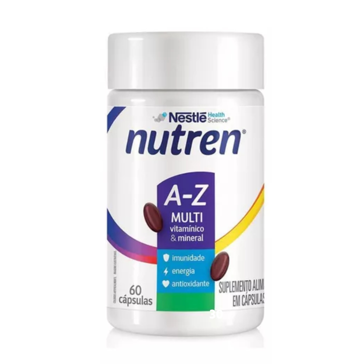 Nutren A-Z Multi é um suplemento alimentar da Nestlé, com vitaminas e mineiras essenciais para nutrição diária completa. Com mineiras quelados (Ferro, Manganês e Selênio).