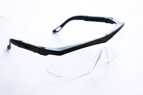 Óculos de segurança constituídos de arco de material plástico preto com pino central e uma fenda em cada extremidade para encaixe de visor de policarbonato disponível na cor incolor, com orifício na parte frontal superior e uma fenda em cada extremidade para o encaixe ao arco, apoio nasal e proteção lateral injetada do mesmo material do visor, proteção superior nas bordas do arco, hastes confeccionadas do mesmo material do arco e compostas de duas peças: semi-haste vazada com uma das extremidades fixada ao arco por meio de parafuso metálico e semi-haste com um pino plástico em uma das extremidades que se encaixa na semi-haste anterior e permite o ajuste do tamanho.